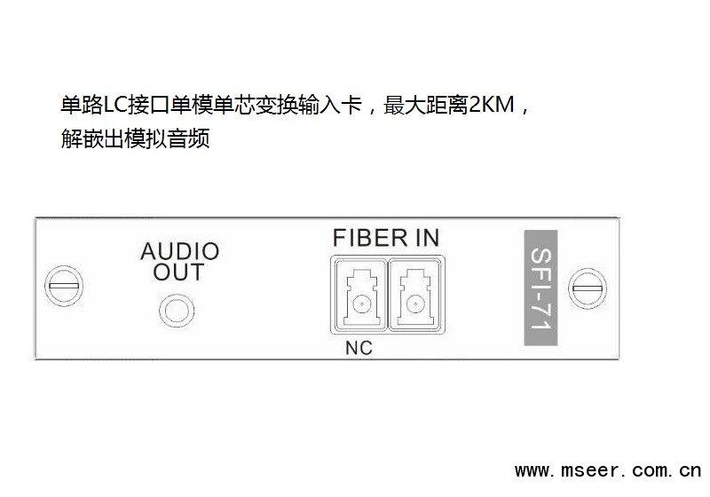 SFI-71 Fiber單通道變換輸入卡,配合SMD主機使用,采用獨立板卡設計,每塊卡支持1路Fiber輸入,LC接口單模單芯,最大距離2KM(可選更遠距離),解嵌出模擬音頻,支持最高1920x1080P60的數字高清圖像傳輸,