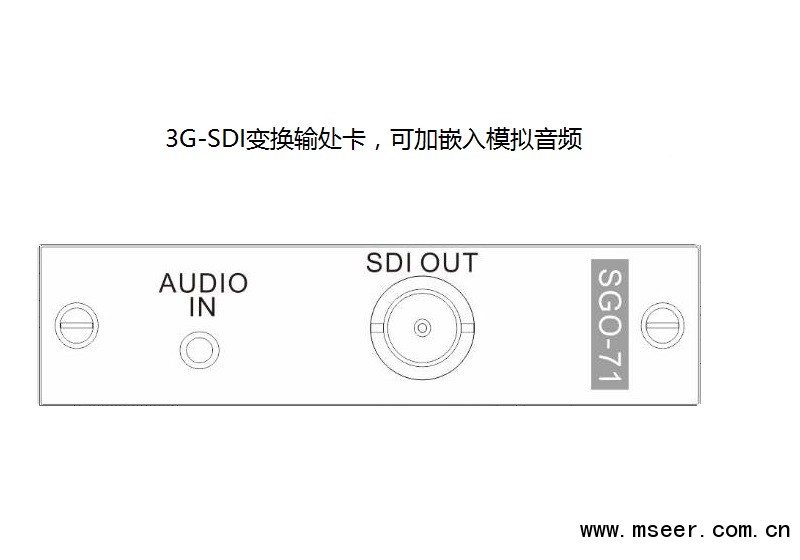 SGO-71 3G-SDI支持上下變換單通道輸出卡,配合SMD主機使用,采用獨立板卡設計,每塊卡支持1路3G-SDI輸出,支持上下變換,兼容HD-SDI及SDI信號,可加嵌入模擬音頻,支持最高1920x1080P60的數字高清圖像傳輸.