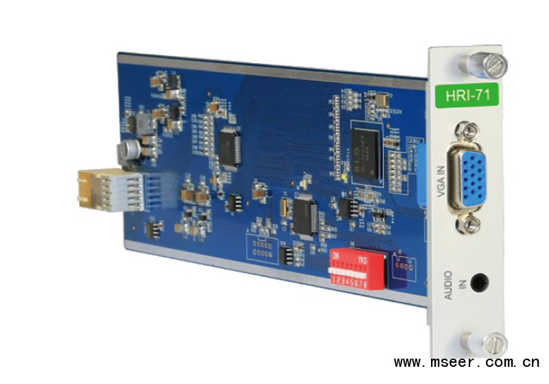 HRI-71  VGA單通道變換輸入卡,配合HMD主機使用,采用獨立板卡設計,每塊卡支持1路ⅤA輸入,可加嵌入模擬音頻,支持最高1920×120060的高清圖像傳輸。