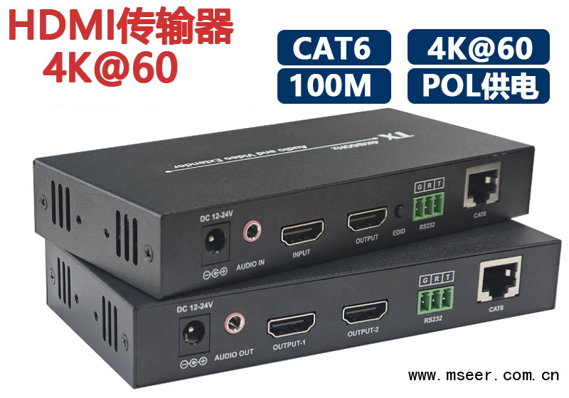 本產品是通過CAT6以上規格的單根網線將HDMI音視頻信號高清無壓縮傳輸至100米,在為用戶降低成本的同時保證信號的穩定。本產品支持雙向紅外信號回傳,獨立音頻傳輸,RS232串口數據透傳和POC單邊供電,POC是指接收端RX或 發射端TX任意一端供電即可(建議電源插到接收端)使整套延長器正常工作。延長器支持HDCP功能,支持學習EDID,,極大的提升了設備的兼容性。該設備具有傳輸距離遠、使用成本低、安裝方便、兼容性好、是一種穩定高效的傳輸方式,廣泛應用于高清會議系統,高清影視拍攝,高清教學系統,高清數字廣告等的音視頻傳輸。