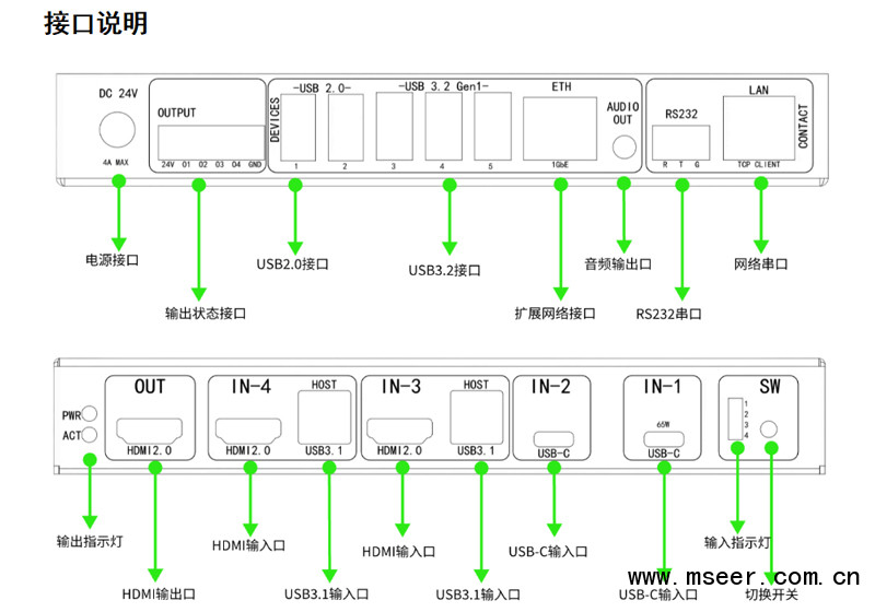 l 多種輸入輸出:2路 HDMI(含USB數(shù)據(jù))輸入,2路USB-C輸入(其中1路支持60W PD供電),1路HDMI2.0輸出